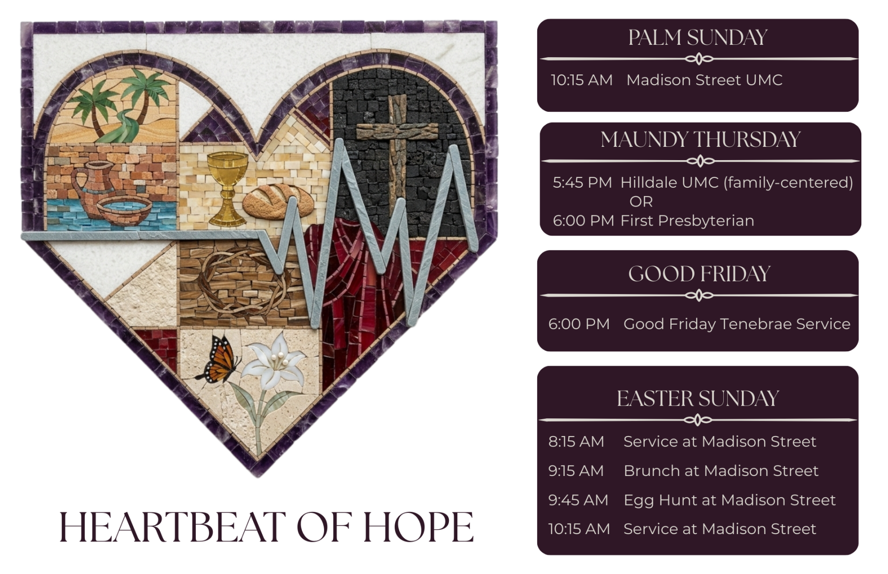 We hope and pray to continue to be a congregation that is always growing more in love with God and continually finding ways to serve our city and world. There is a place for you here. When we are worshipping, finding community, and making a difference together in our world, we see God’s love more fully.